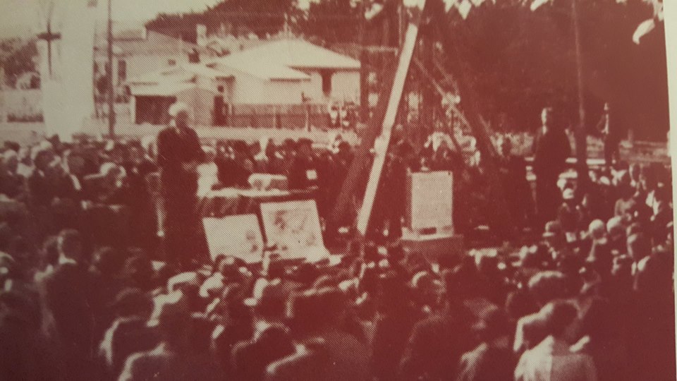 The ceremony for the opening of Horowhenua College. Minister of Education (at the time) speaking